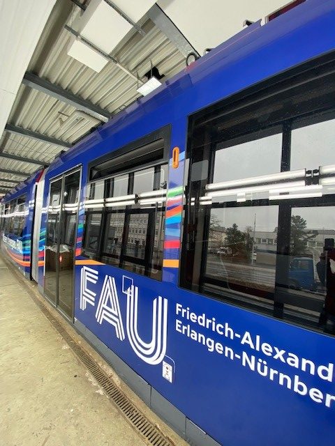Das Nürnberger Stadtbild ist ab sofort um ein markantes Detail reicher. Eine Straßenbahn im neuen Design der Friedrich-Alexander-Universität Erlangen-Nürnberg (FAU) fährt ab Samstag, 2. April, in der Frankenmetropole. Prof. Dr. Joachim Hornegger, Präsident der FAU: „Wir wollen als FAU noch stärker in Nürnberg präsent sein und die Menschen jeden Tag an die erstklassige Universität in der Stadt erinnern, die hier schon lange beheimatet ist.“