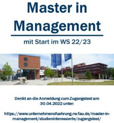 Alle weiteren Informationen zum Master in Management gibt es noch einmal hier: https://www.unternehmensfuehrung.rw.fau.de/master-in-management/
