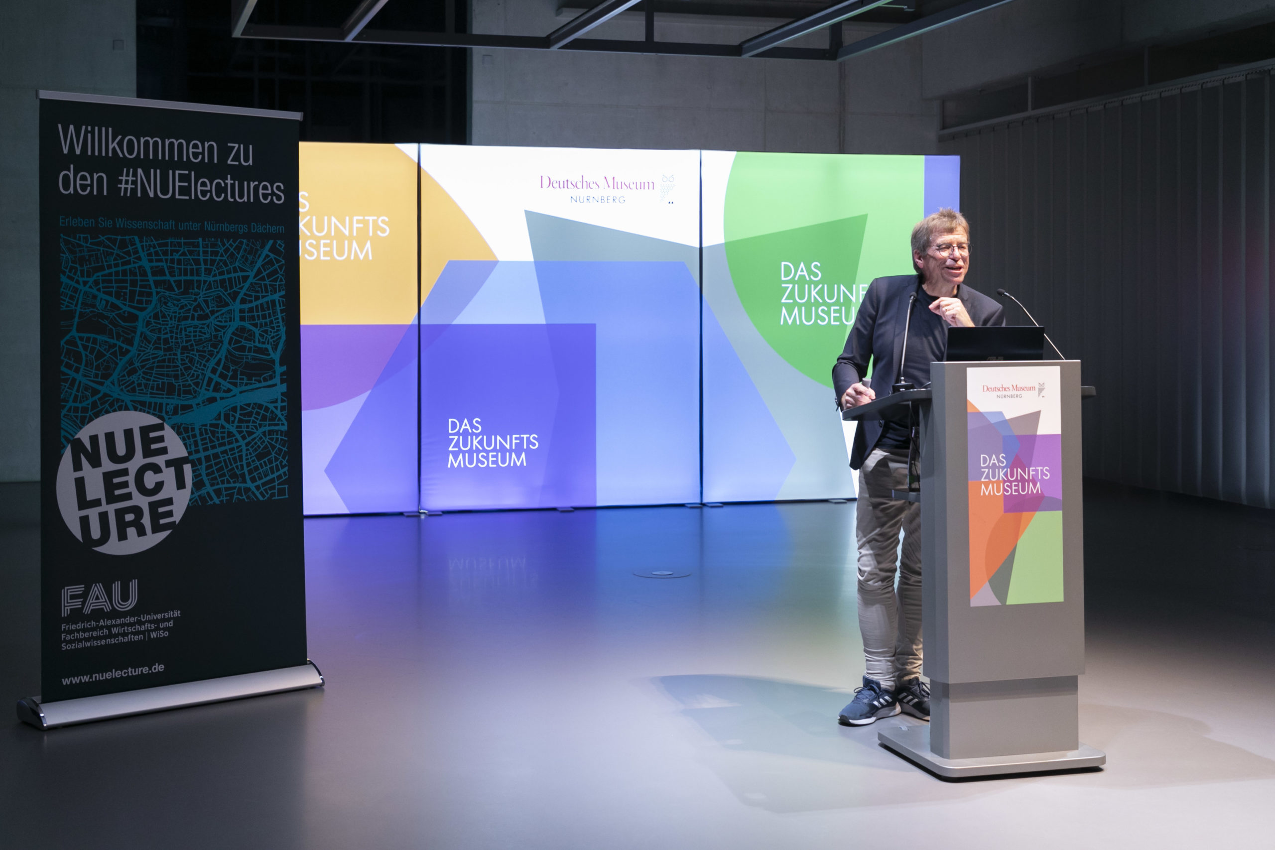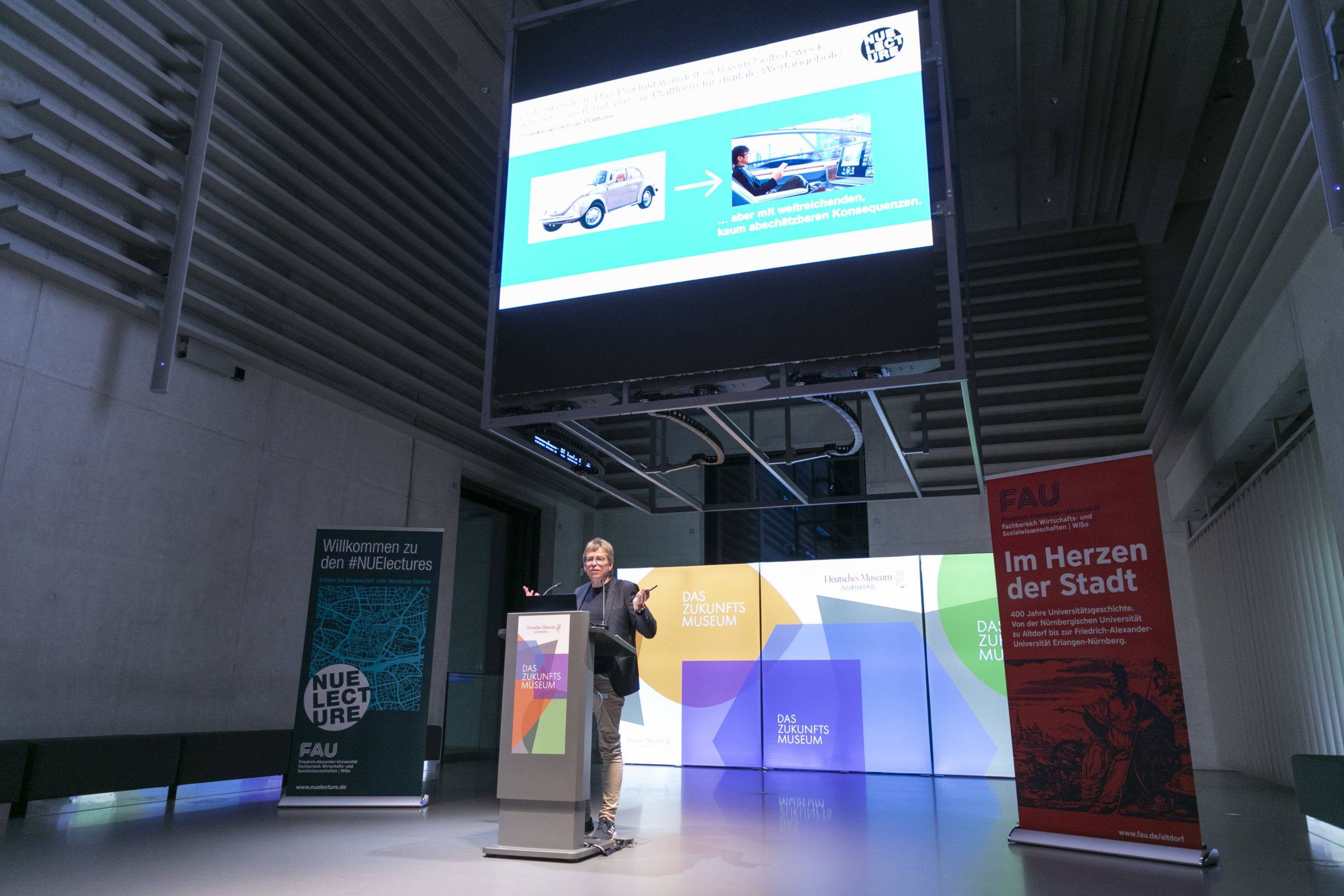 „Digitale industrielle Plattformen – eine Zeitenwende in der industriellen Wertschöpfung?“ war das Thema der #NUElecture am 18. Oktober 2022 mit Prof. Dr. Kai-Ingo Voigt, Lehrstuhl für Betriebswirtschaftslehre, insbesondere Industrielles Management, an der FAU WiSo. Wie sind solche industriellen Plattformen aufgebaut? Welche Formen gibt es? Und welche Vorteile bieten digitale industrielle Plattformen? Diese und weitere Fragen beantwortete Prof. Voigt bei der Veranstaltung im Zukunftsmuseum in Nürnberg.