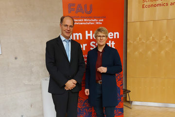 Am 9. November 2022 hat der Sachverständigenrat zur Begutachtung der gesamtwirtschaftlichen Entwicklung – „die Wirtschaftsweisen“ – sein Jahresgutachten an die Bundesregierung übergeben. Am Mittwoch, 23. November, hat Prof. Dr. Veronika Grimm, die den Lehrstuhl für Volkswirtschaftslehre, insbesondere Wirtschaftstheorie, an der FAU WiSo leitet und seit April 2020 Mitglied des Sachverständigenrats ist, das Gutachten an der WiSo Nürnberg vorgestellt. Der Vortrag fand im Rahmen der renommierten Nürnberger Ludwig-Erhard-Vorlesungen statt. Die Moderation hat Prof. Dr. Thiess Büttner, Lehrstuhl für Volkswirtschaftslehre, insbesondere Finanzwissenschaft, übernommen. Rund 150 Personen verfolgten den Vortrag im Hörsaal.
