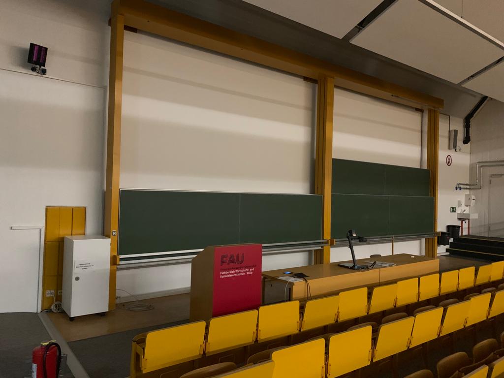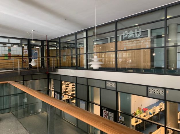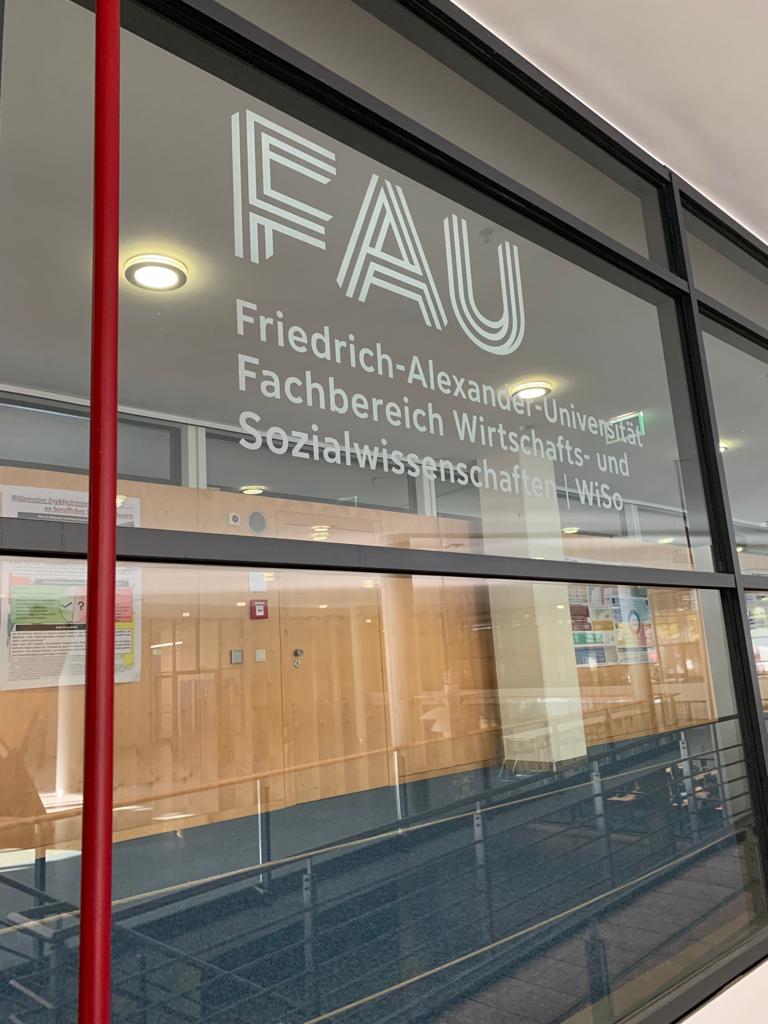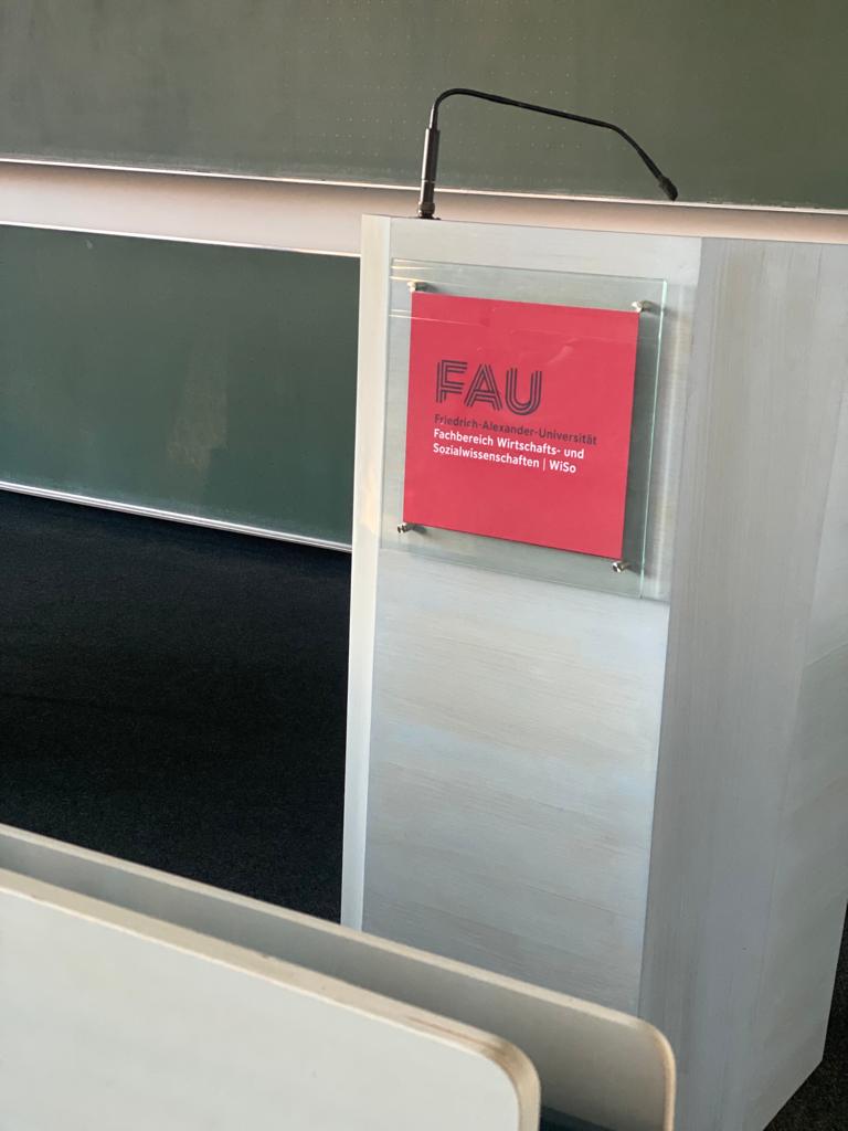 Zum Start ins Wintersemester 2022/23 wurden an zentralen Stellen mit hoher Sichtbarkeit im Gebäude die Beschriftungen und Marken-Logos im neuen Design angebracht. Dies kennzeichnet nun die Wände und Pulte in den großen Hörsälen, und macht die Marke des Fachbereichs WiSo für alle Besuchenden sichtbar. In weiteren Hörsälen und Seminarräumen zeigen sogenannte L-Aufsteller das Corporate Design. Vor den beiden WiSo-Gebäuden in der Langen Gasse und Findelgasse wehen Fahnen mit dem neuen FAU-Logo und den rot-blauen Farben der WiSo im Wind. Im Gebäude in der Findelgasse weist zudem ein neues Leitsystem mit Schildern im neuen Design der FAU WiSo den Weg durchs Haus. Weitere Maßnahmen, die alle durch Fördermittel finanziert werden, sind in Arbeit. Der Sprecher des Fachbereichs, Prof. Dr. Thomas M. Fischer, dankt allen Beteiligten: „Unser Team für Kommunikation und Marketing hat unter der Leitung von Silke Sauer in kurzer Zeit Vieles erfolgreich umgesetzt. Das gibt uns auch wichtige Impulse im derzeit laufenden Strategieprozess an der WiSo und in der FAU.“