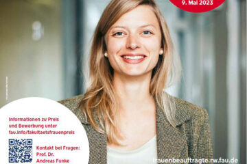 An der FAU WiSo ist derzeit der nach ihr benannte Fakultätsfrauenpreis zur Auszeichnung der besten Promotions- und Forschungsvorhaben von Wissenschaftlerinnen ausgelobt. Doktorandinnen, Postdoktorandinnen, Habilitandinnen oder Juniorprofessorinnen ohne Tenure Track können sich bis 9. Mai bei Prof. Dr. Andreas Funke, stellvertretender Fakultätsbeauftragter für die Gleichstellung von Frauen in Wissenschaft und Kunst, bewerben.