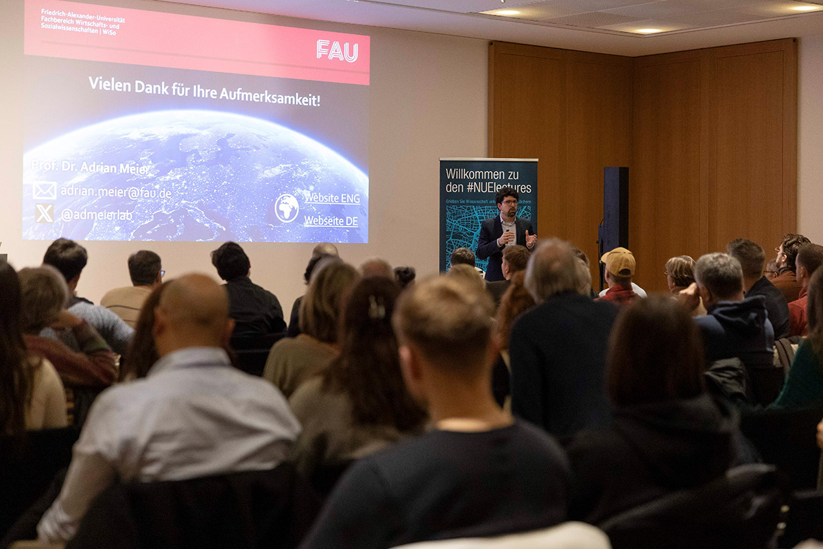 „Psychische Gesundheit: Machen soziale Medien (un)glücklich?“ war das Thema der ersten #NUElecture im Wintersemester 2023/2024 mit Prof. Dr. Adrian Meier, Juniorprofessor für Kommunikationswissenschaft an der FAU WiSo. In seinem Vortrag gab er einen Überblick über die komplexe Befundlage zur Rolle sozialer Medien für psychische Gesundheit und Wohlbefinden. Neben zentralen Befunden gab Professor Meier auch einen Ausblick darauf, wie diese Forschung aktuelle Regulierungsbestrebungen der EU informiert (Digital Services Act, Right to Disconnect).