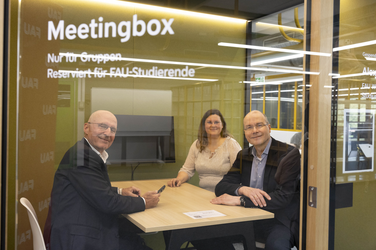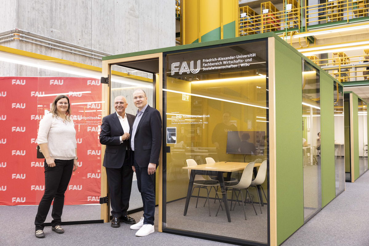 Die neuen Cubes bieten Platz für bis zu vier Personen und sind ideal für kollaboratives Arbeiten und effiziente Meetings ausgestattet. „Durch die großartige Unterstützung und Förderung von Herrn Fackelmann können wir ein wichtiges Anliegen unserer Studierenden erfüllen und gleichzeitig die Infrastruktur an unserem Fachbereich erheblich verbessern“, sagte Prof. Dr. Thomas M. Fischer, Sprecher der FAU WiSo und Dekan der Rechts- und Wirtschaftswissenschafltichen Fakultät.