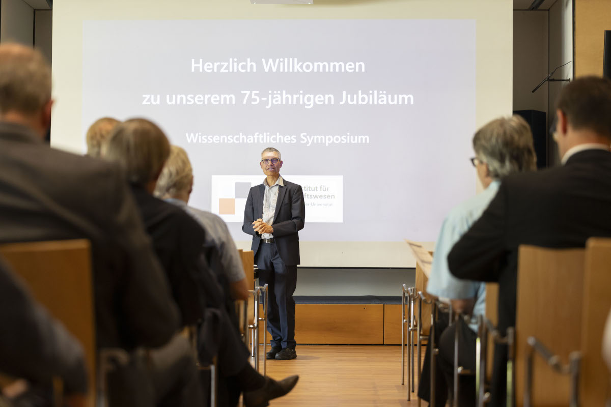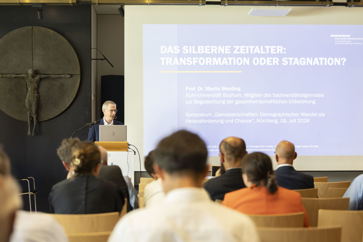 Am Nachmittag setzte sich die Jubiläumsveranstaltung beim wissenschaftlichen Symposium fort. Nach der Begrüßung durch Prof. Dr. Matthias Wrede, Vorstandsvorsitzender des Genossenschaftsinstituts, und den Grußworten von Prof. Dr. Robert Freitag, Prodekan der Rechts- und Wirtschaftswissenschaftlichen Fakultät der FAU, folgten Vorträge zahlreicher hochkarätiger Rednerinnen und Rednern.