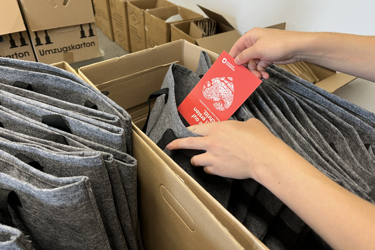 Aber bevor die knapp 2.000 Taschen zum Studienstart verteilt werden können, müssen sie natürlich erst einmal gepackt sein. Impressionen von der großen Packaktion, bei der zahlreiche engagierte Studierende halfen, gibt es am Ende des Beitrags in der Bildergalerie und auf den Social-Media-Kanälen der FAU Wiso, z. B. auf Instagram und Facebook.