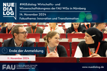 Diese und weitere spannende Fragen werden auf dem 6. Nürnberger Dialog Wirtschaft und Wissenschaft am 14. November 2024 beantwortet. Der #NUEdialog der FAU WiSo in Nürnberg widmet sich 2024 dem Fokusthema „Innovation und Transformation“ und bietet auch in dieser Ausgabe wieder ein vielseitiges Programm. Die Konferenz findet an der FAU WiSo, Lange Gasse 20, in Nürnberg statt.