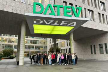 Studierende des Masterstudiengangs FACT der FAU WiSo konnten sich im Rahmen einer Exkursion bei der Datev eG einen Einblick in die aktuellen Entwicklungen im Bereich Tax Technology verschaffen. Prof. Dr. Robert Mayr, CEO der Datev eG und Honorarprofessor an der FAU Wiso, sowie Prof. Dr. Frank Hechtner, Lehrstuhl für Betriebswirtschaftliche Steuerlehre der FAU WiSo, haben in einer gemeinsamen Veranstaltung den Studierenden die Themen Digitalisierung und künstliche Intelligenz im Bereich der Besteuerung näher gebracht.