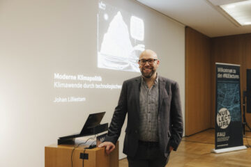 In der aktuellen #NUElecture referierte Prof. Dr. Johan Lilliestam, Lehrstuhl für Sustainability Transition Policy der FAU WiSo, im Neuen Museum Nürnberg zum Thema „Moderne Klimapolitik: Herausforderungen und Chancen“. In seiner #NUElecture, die knapp 120 Teilnehmende besuchten, erläuterte er die neuesten Entwicklungen in der Klimapolitik. Dabei legte er Gründe dar, warum alte klimapolitische Weisheiten nicht mehr zutreffen und zeigte die Herausforderungen auf, die vor uns liegen. Nach der anschließenden Diskussionsrunde klang die Veranstaltung bei Essen und Getränken aus.