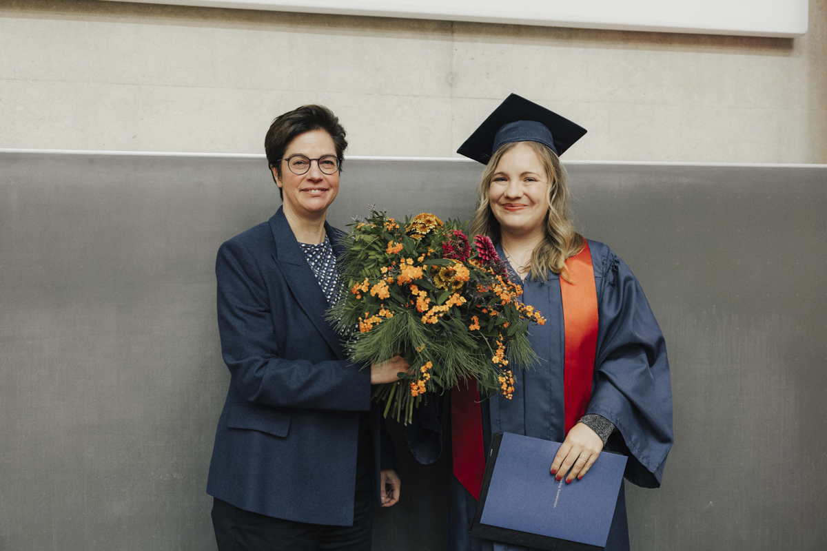 Am Dienstag, 10. Dezember 2024, wurde die Verabschiedung der Promovierten des dritten Promotionssammeltermins (PST 3) des Fachbereichs Wirtschafts- und Sozialwissenschaften gefeiert. Es nahmen 20 Promovierte und deren Begleitungen an der Feier teil. Forschungsdekanin Prof. Dr. Nicole Koschate-Fischer führte durch das Programm aus Livemusik von Jasmin Dazert & Stephan Golser, der Festrede von Prof. Dr. David Rygl, der Promoviertenrede von Dr. Laura Heinl, Übergabe der Abschlussbescheinigungen und Preisverleihung der Hermann Gutmann Promotionspreise. Mit dem traditionellen Hutwerfen und einem Sektempfang endete die Feier im Foyer.