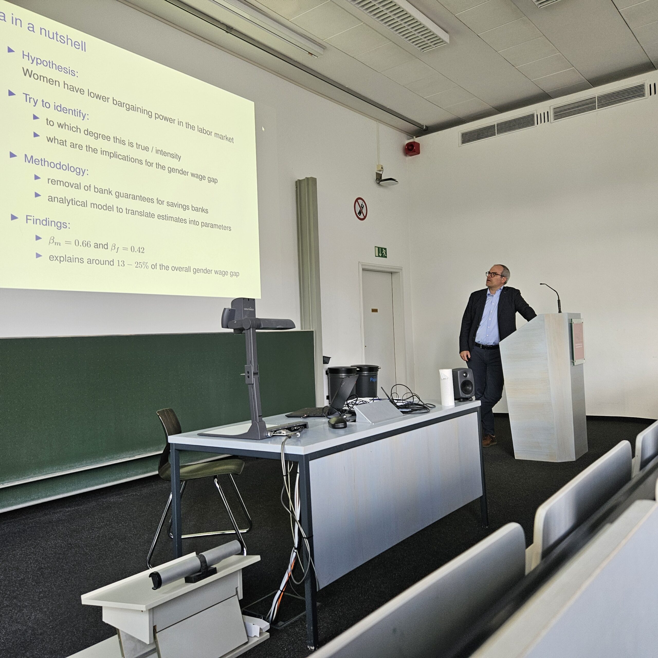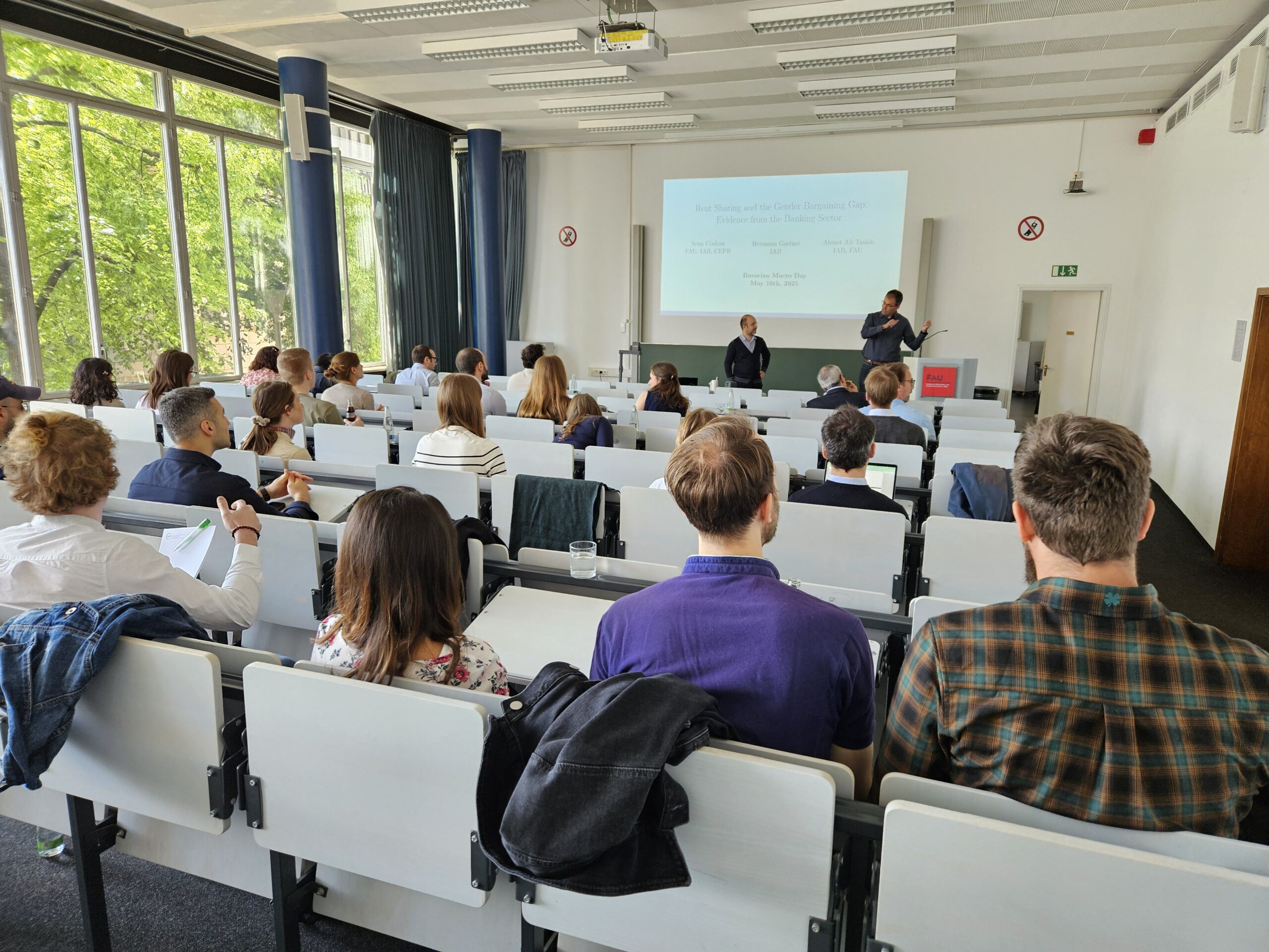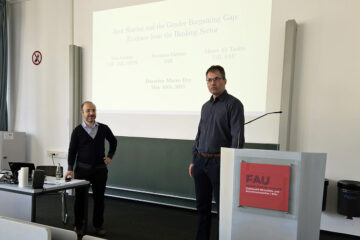 Die lokale Organisation des Events wurde in diesem Jahr von Prof. Dr. Jonas Dovern, Lehrstuhl für Statistik und Ökonometrie der FAU WiSo, sowie Prof. Dr. Christian Merkl übernommen. Im Rahmen des Programms stellten sieben jüngere Wissenschaftlerinnen und Wissenschaftler ihre aktuellen und innovativen Forschungsarbeiten vor (nach Vorauswahl durch eine Kommission) und sieben erfahrenere Wissenschaftlerinnen und Wissenschaftler (in der Regel Professorinnen und Professoren einer anderen Universität) diskutierten die Papiere. Die Veranstaltung bot die Möglichkeit für Austausch und Diskussion und zeigte die ganze Bandbreite der Makroökonomie an bayerischen Universitäten. Der 5. Bavarian Macro Day findet im kommenden Jahr an der Universität Augsburg statt.