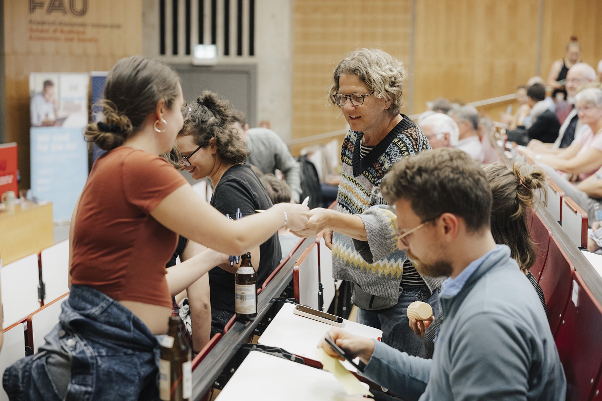 Beide Beiträge wurden mit viel Applaus belohnt – sie brachten nicht nur jede Menge Humor in den Hörsaal, sondern überzeugten zugleich durch spannende Inhalte. Neben dem Applaus gab es als Dankeschön für beide Slammer außerdem einen FAU-Bierkrug. „Ein rundum gelungener Abend, der Wissenschaft auf lockere und kreative Weise erlebbar machte!“, freut sich Wissenschaftskommunikatorin Laura Kneppe.