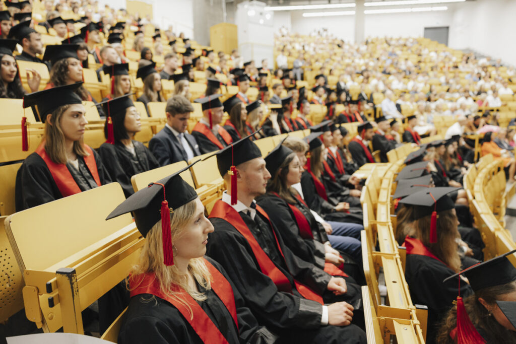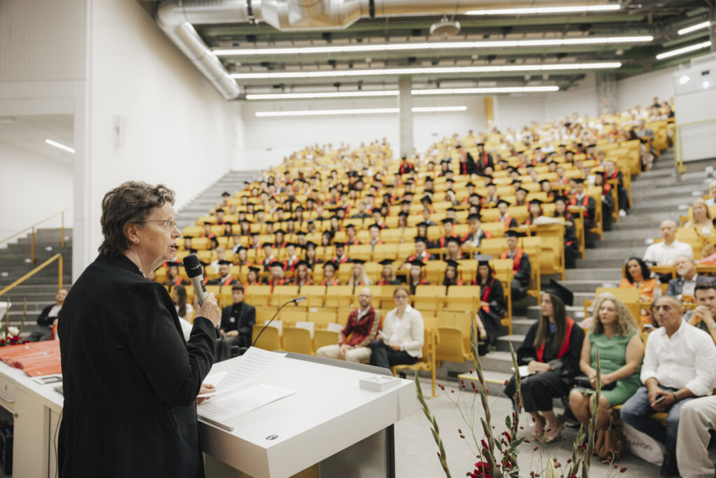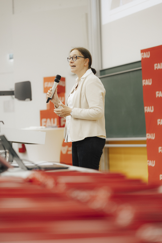 Am Freitag, 11. Juli 2025, hat wieder die feierliche Verabschiedung der Absolventinnen und Absolventen der FAU WiSo stattgefunden. An der Feier nahmen rund 170 Absolventinnen und Absolventen (Bachelor und Master) mit ihren Familien und Freunden teil. Der Hörsaal H4 war mit ca. 700 Personen fast komplett gefüllt.