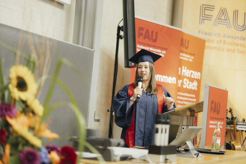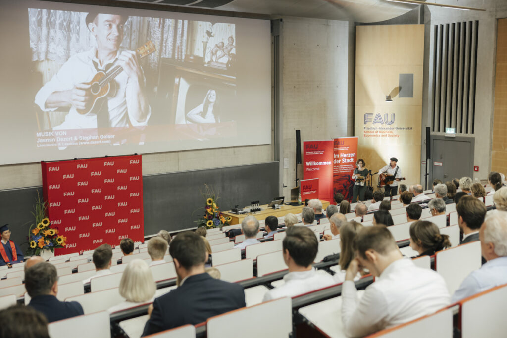 Am Dienstag, 15. Juli 2025, wurde die Verabschiedung der Promovierten des ersten und zweiten Promotionssammeltermins des Fachbereichs Wirtschafts- und Sozialwissenschaften (FAU WiSo) gefeiert. Es nahmen 25 Promovierte und deren Begleitung an der Feier im Hörsaal H 5 an der Nürnberger FAU WiSo teil.