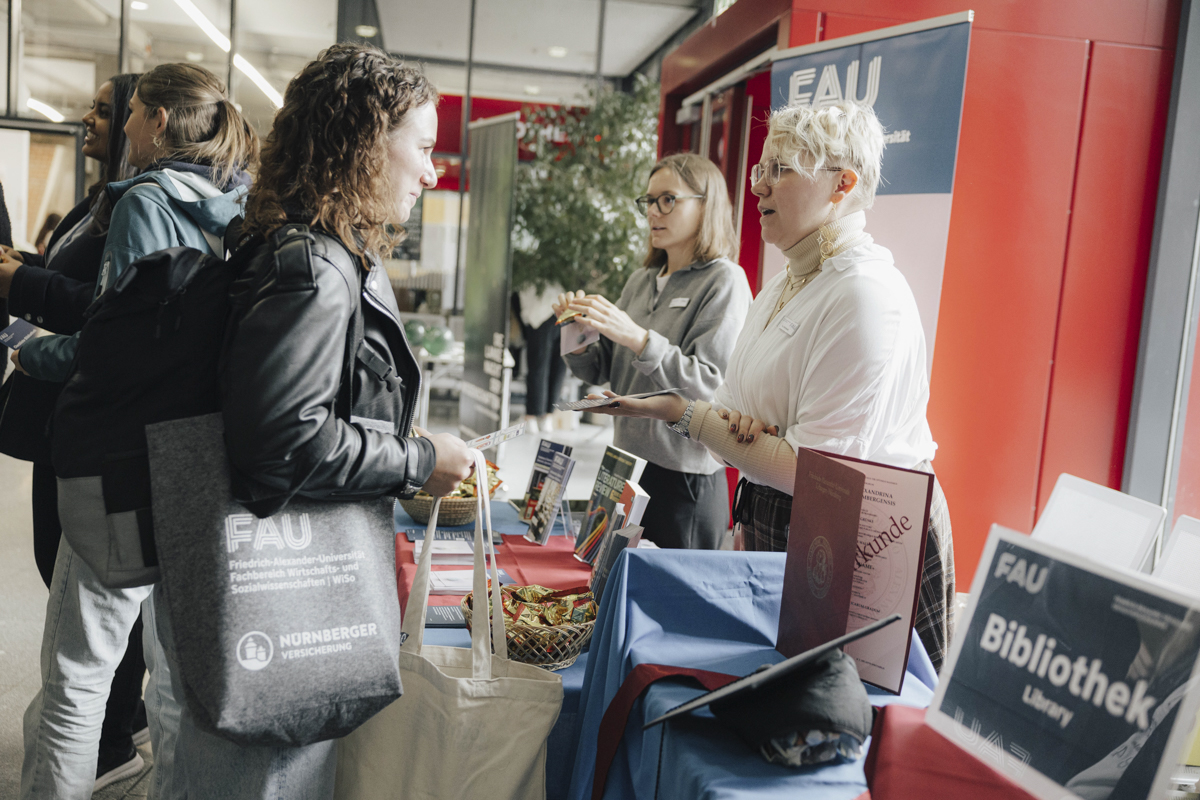 Nach der Erstsemesterbegrüßung, wo auch die beliebten Willkommenstaschen der FAU WiSo verteilt werden, geht es zur Infobörse der WiSo im Foyer der Langen Gasse. Auf der Messe präsentieren sich über 30 Einrichtungen, Institutionen, Initiativen und Firmenpartner des Fachbereichs. Am Nachmittag haben die Erstsemester die Möglichkeit, an einer WiSo City Tour teilzunehmen, um die Stadt Nürnberg und ihre Kommilitoninnen und Kommilitonen kennenzulernen.