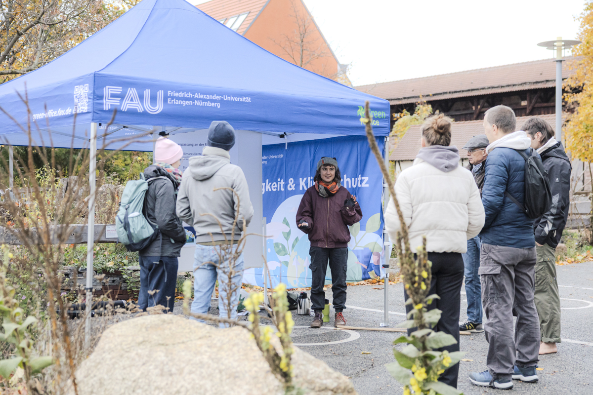 Für interaktive Erlebnisse sorgten zahlreiche Mitmachaktionen und Ausstellungen: Beim Programmpunkt „Energieerzeugung erleben: Nachhaltig, verständlich, greifbar“ konnten Besucherinnen und Besucher auf dem Energiefahrrad selbst Strom erzeugen und an einer mobilen Photovoltaikanlage entdecken, wie flexibel Sonnenenergie genutzt werden kann. Auch in der Virtual-Reality-Station zur nachhaltigen Logistik verband sich Technik mit Umweltbewusstsein. Teilnehmende tauchten virtuell in innovative Lösungen für ressourcenschonende Lagerprozesse ein. Die WiSo Oase bot als grüne Ruheinsel mitten in Nürnberg Führungen durch klimaresiliente Pflanzenwelten und zeigte eindrucksvoll, wie Nachhaltigkeit im urbanen Raum umgesetzt werden kann. Kreativität und Umweltbewusstsein standen außerdem beim Upcycling-Angebot von save nature e.V. und Gaia e.V. im Mittelpunkt: Aus Alltagsmaterialien entstanden einzigartige Unikate, während Teilnehmende mehr über Ressourcenschonung und Kreislaufwirtschaft erfuhren.