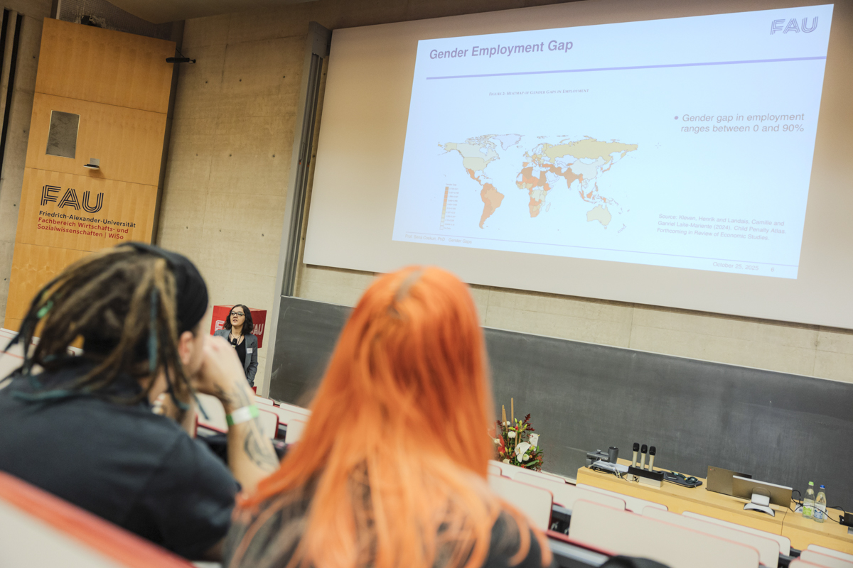 Das Vortragsprogramm der FAU WiSo bot hierbei vielfältige Einblicke in aktuelle Forschungsfragen und gesellschaftlich relevante Themen. Der Lehrstuhl für Wirtschaftspädagogik und Personalentwicklung organisierte gemeinsam mit der Stadt Nürnberg eine Podiumsdiskussion zum Thema „Bildung für nachhaltige Entwicklung: Nürnbergs Schulen packen’s an – Stadtgesellschaft im Dialog“, bei der Expertinnen und Experten aus Wissenschaft, Verwaltung und Schulen darüber sprachen, wie nachhaltiges Denken fest im Unterricht verankert werden kann.