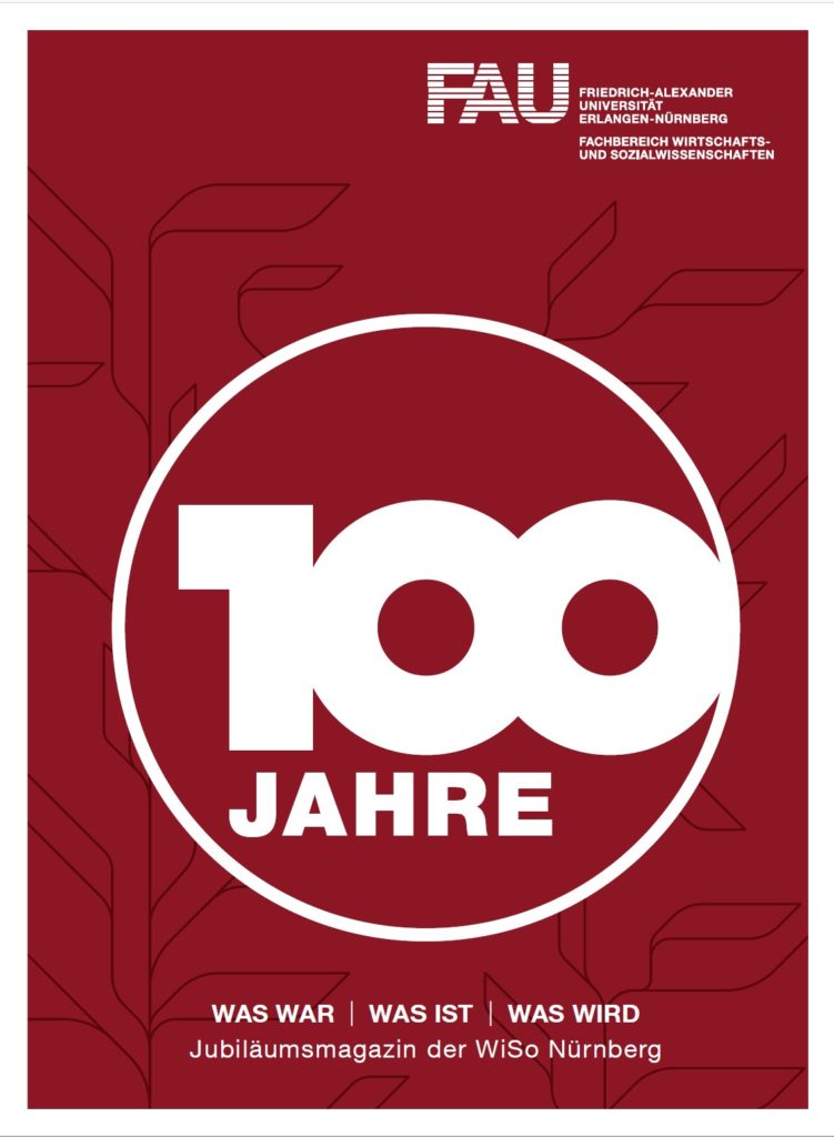 Im modernen Magazin-Stil und mit dem Blick nach vorne greift das Jubiläumsmagazin nun Geschichte und Geschichten rund um die 100. Jahre WiSo auf. Auf 82 Seiten findet sich umfangreicher Lesestoff zur Vergangenheit und zur Zukunft der WiSo Nürnberg. Eine bunte Sammlung Glückwünsche runden das Magazin ab und zeigen, wie tief verbunden die WiSo mit Wirtschaft, Gesellschaft und Region ist.