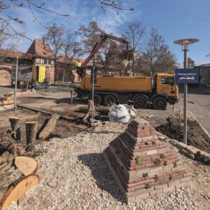 Die roten Klinkersteine sind übrigens beim Neubau der FAU WiSo übriggeblieben und wurden, ebenso wie die Gehwegplatten, upgecycelt.