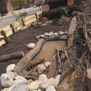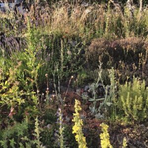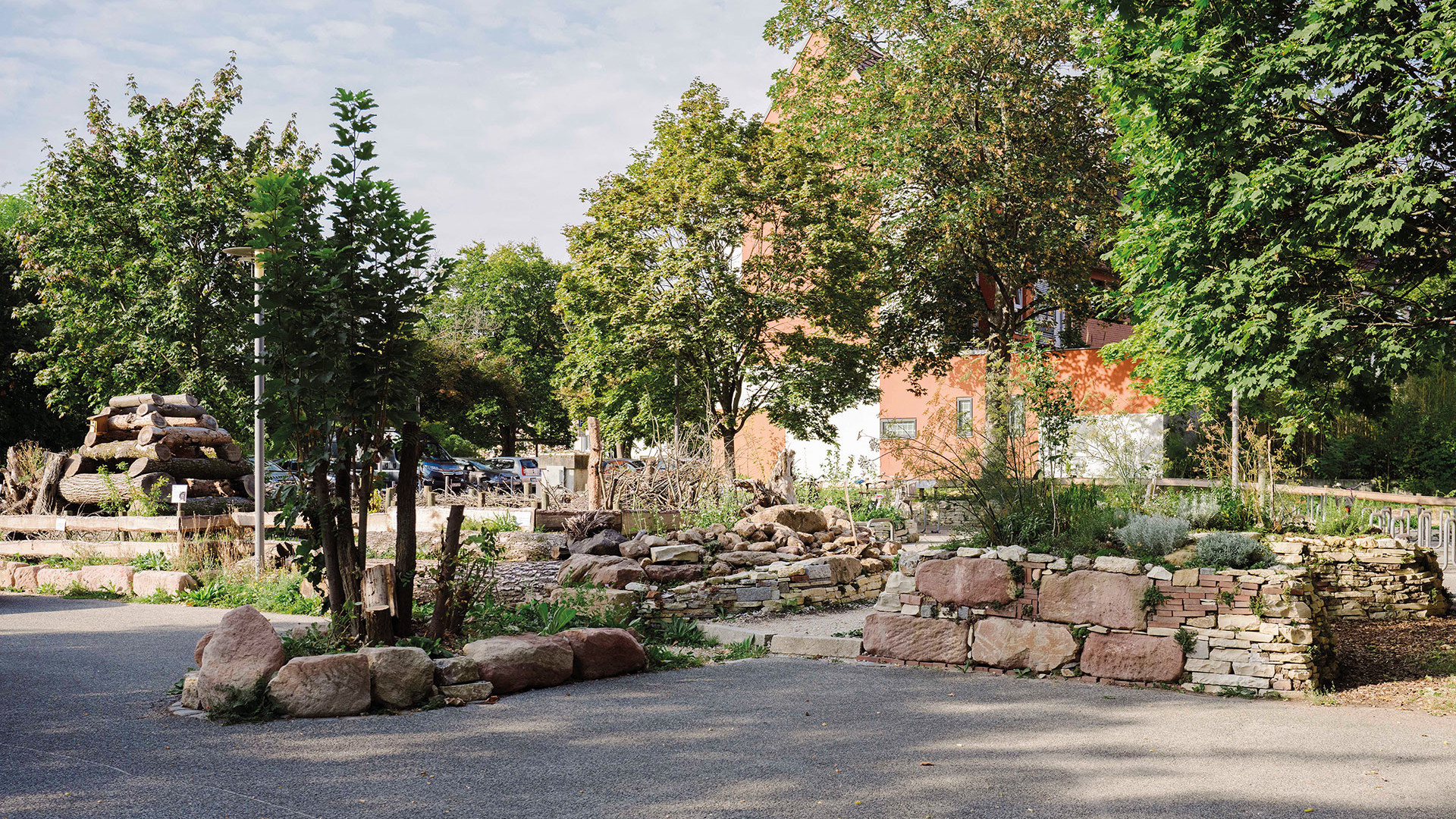 Um die Biodiversität zu fördern, wurde in diesem Beet der Boden bewusst abgemagert. Dies geschah durch das Abtragen des Oberbodens und dem anschließenden Auffüllen mit Schotter, welcher ebenfalls vom ehemaligen Baustellenlagerplatz recycelt werden konnte. Anschließend wurde