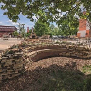 Diesem Ziel hat sich Manfred Rother (Experte für Upcycling-Trockenmauern) seit über 40 Jahren verschrieben. In Zusammenarbeit mit ihm sind hier an der FAU WiSo Oase einige kleinere und größere Mauern entstanden. Diese Trockenmauern wurden dabei ausschließlich aus UpcyclingMaterial gebaut. Alte Klinkersteine, Kalkstein-Hausabriss, Granit-Arbeitsplatten, Sandsteine aus einem ehemaligen Haus … eine bunte Mischung die sich auch im Charakter der Mauern widerspiegelt. Kein Stein gleicht dem anderen, aus den Fugen wachsen unter anderem Steinbrech, Hauswurz, Sedum oder Thymian. Zudem bieten die Ritzen zwischen den Steinen auch einen faszinierenden Lebensraum für viele Tierarten. Recycling-Trockenmauern fördern also nicht nur die Ökologische Vielfalt, oder überzeugen durch optische Highlights, sondern sparen und binden ganz nebenbei noch eine Menge CO2.