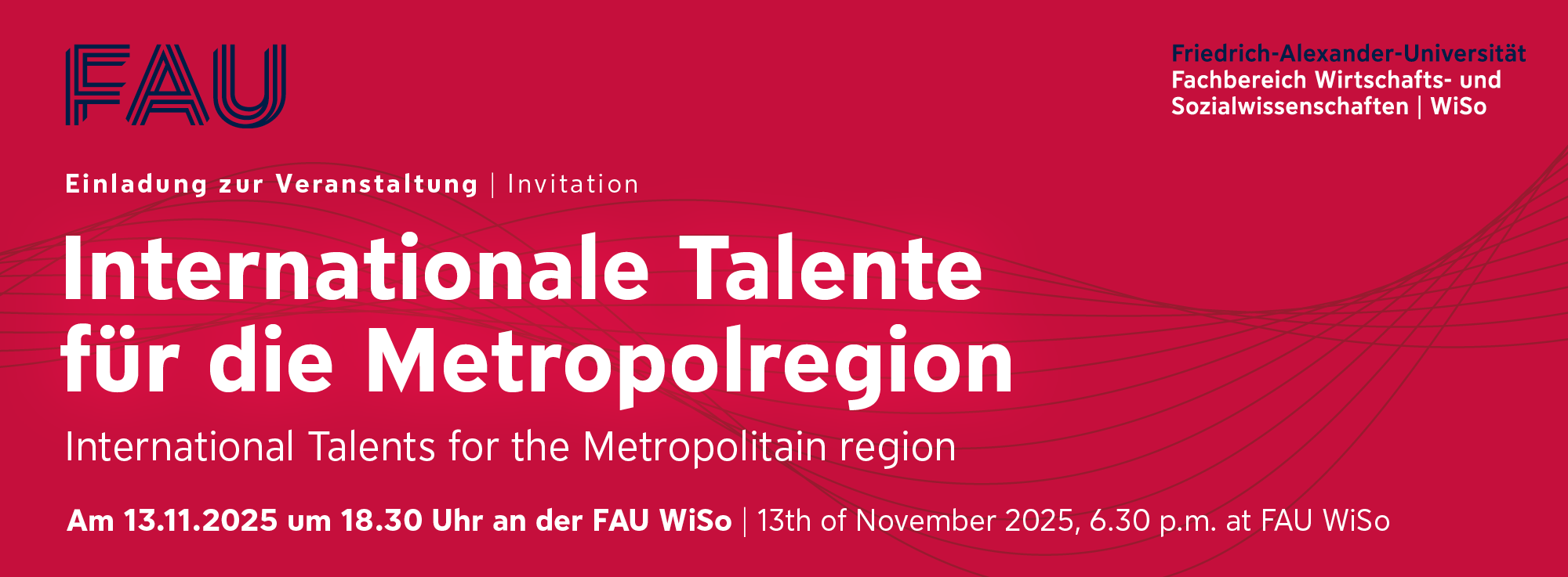 Mit dieser Veranstaltung wollen wir Unternehmen in der Metropolregion über die zahlreichen international orientierten Bachelor- und Masterprogramme an der FAU-WiSo informieren. Gleichzeitig wollen wir diesen Unternehmen die Möglichkeit bieten, frühzeitig Kontakte zu zukünftigen Absolventinnen und Absolventen aufzubauen und diese für sich zu gewinnen.